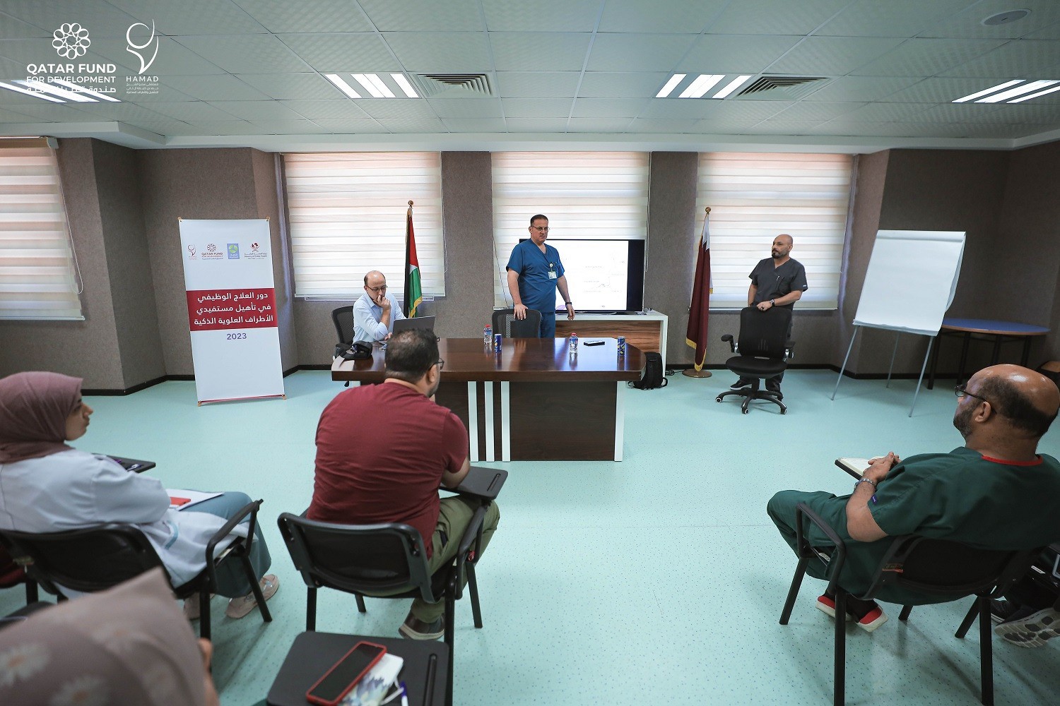 وتابع د. عبد الهادي، المحور الثالث وهو محور مهم لما له من أثر في رفع مستوى أداء الطاقم الطبي الغزي في المستشفى حيث يجري الوفد خلال هذه الزيارة تدريبات متخصصة ومتقدمة للطواقم الغزية في قسم الأطراف الصناعية حول استخدام بروتوكولات وأساليب حديثة في قياس وتركيب الأطراف السفلية وتأهيل مستخدميها ، وسيشكل هذا التدريب نقلة نوعية في تأهيل مبتوري الأطراف السفلية خاصة مع إضافة أجهزة جديدة للتعامل مع الحالات المعقدة، وقد شمل التدريب تقييماً أثبت فيه المتدربون جدارتهم، كما كان هناك تدريبًا تخصصيًا لتطوير مهارات أخصائي العلاج الوظيفي للتعامل مع مستفيدي الأطراف العلوية الذكية، إضافة إلى تدريب ثالث متقدم لطواقم قسم السمع والتوازن في مجال التأهيل السمعي اللفظي عبر التوأمة مع قسم السمع والتوازن في مؤسسة حمد الطبية.