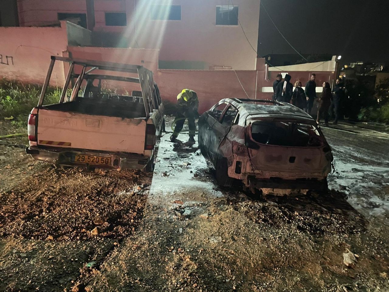 بالصور.. مستوطنون يحرقون سيارات المواطنين في كفر قاسم