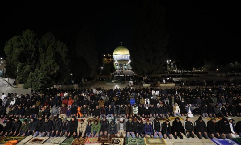 بالصور.. 25 ألفًا يؤدون صلاتي العشاء والتراويح في المسجد الأقصى