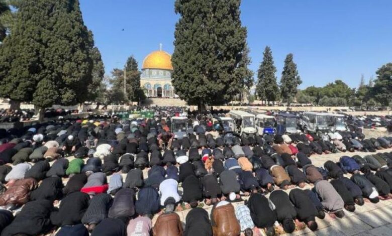 “بالصور”70 ألف مصلٍّ أقاموا صلاة الجمعة في المسجد الأقصى المبارك اليوم