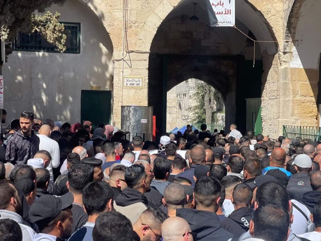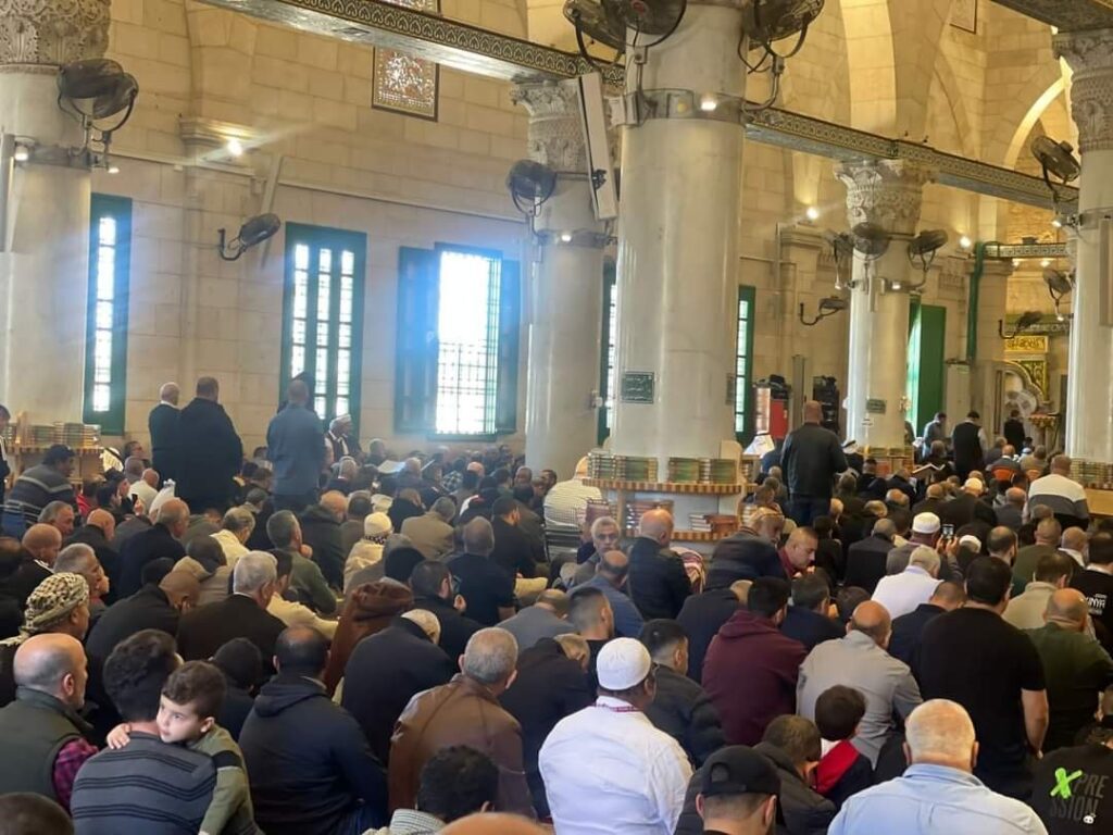 وقالت مصادر مقدسية إن نحو 70 ألف مصل من أهالي القدس والداخل المحتل، ومن تمكن من الوصول للمسجد من الضفة أدوا الصلاة في باحاته ومصلياته المسقوفة.