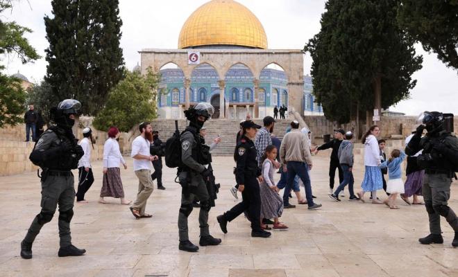 اقتحم عشرات المستوطنين، صباح اليوم الاثنين 29 مايو 2023، المسجد الأقصى المبارك، من جهة باب المغاربة، بحراسة مشددة من قوات وشرطة الاحتلال.