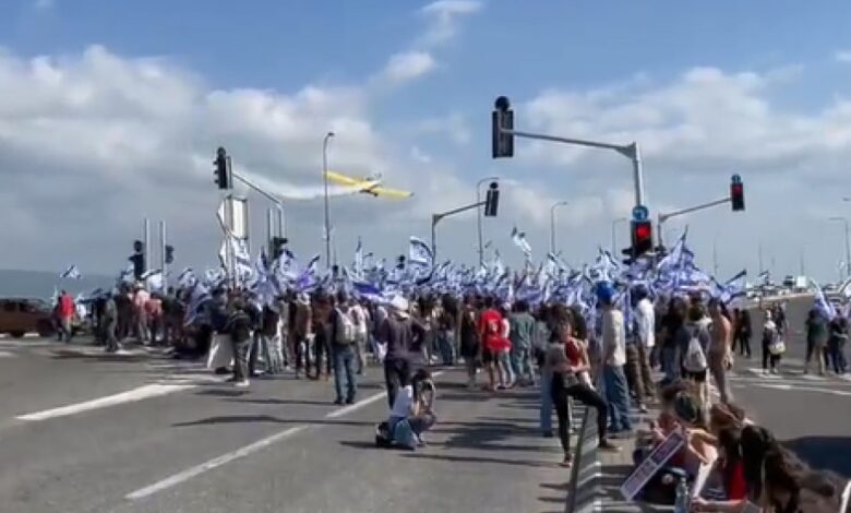 “بالفيديو” طيار يحلق فوق المتظاهرين ويرشهم بمادة غريبة بالجليل الأعلى