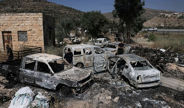 نداءات استغاثة – مستوطنون يهاجمون المنازل ويحرقون المركبات في ترمسعيا (فيديو)