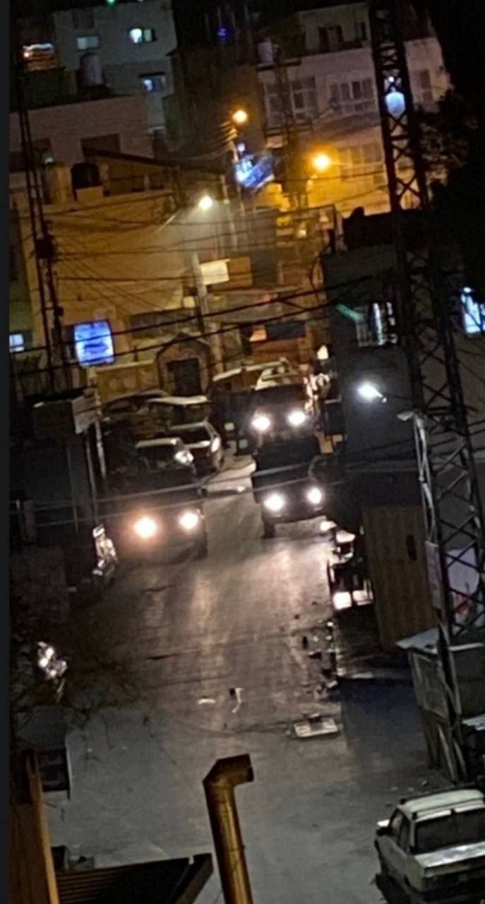 وفي السياق ذاته، أفادت مصادر محلية، بأن قوات كبيرة من جيش الاحتلال اقتحمت محيط المقبرة الشرقية في مدينة نابلس، واعتقلت الشاب عبد الله ابو صافي من منزله.