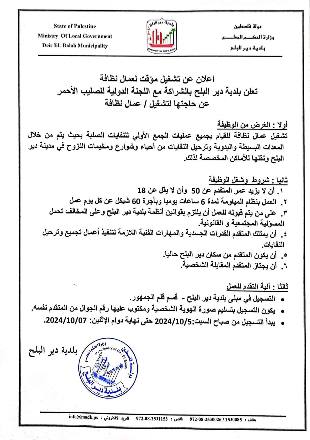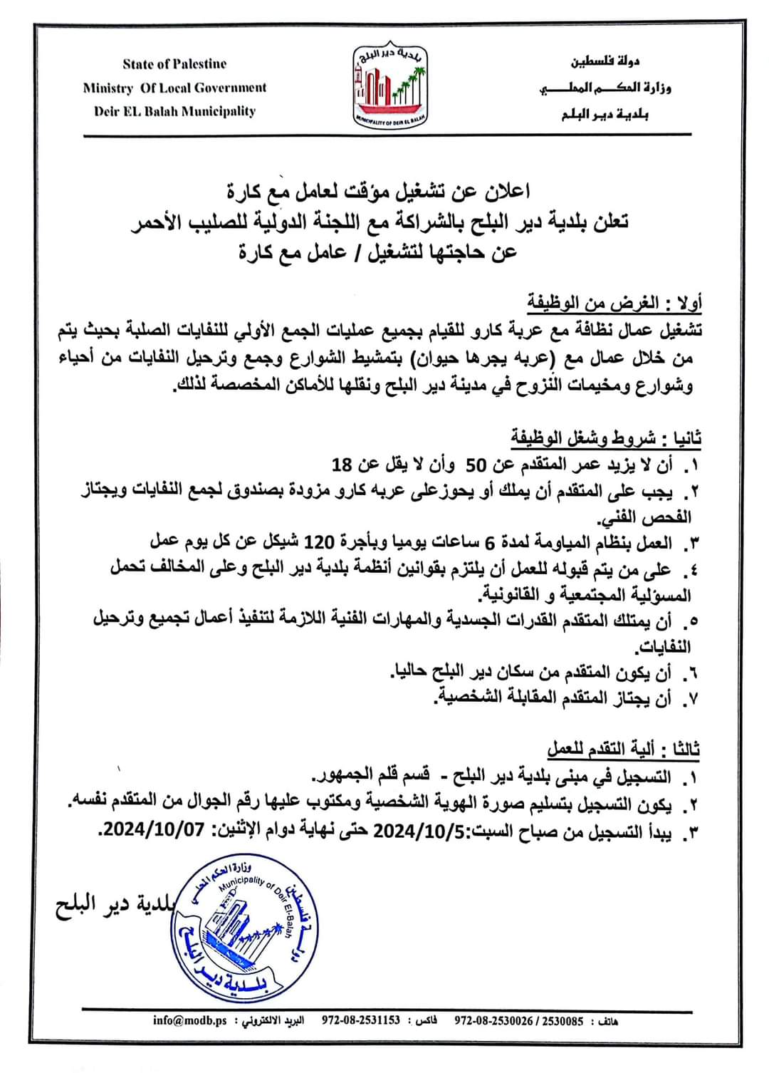 وصل المواطن اليوم إعلان هام صادر عن بلدية دير البلح .