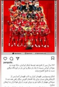 عندما نشر برسيبوليس صورة عبر حساباته الرسمية على مواقع التواصل الاجتماعي قبل مباراته أمام غوا الهندي، كتب فيها: عازمون على احتلال الهند مجددا، كما فعل الجيش الإيراني قبل 282 عاما، ولكن عن طريق كرة القدم.