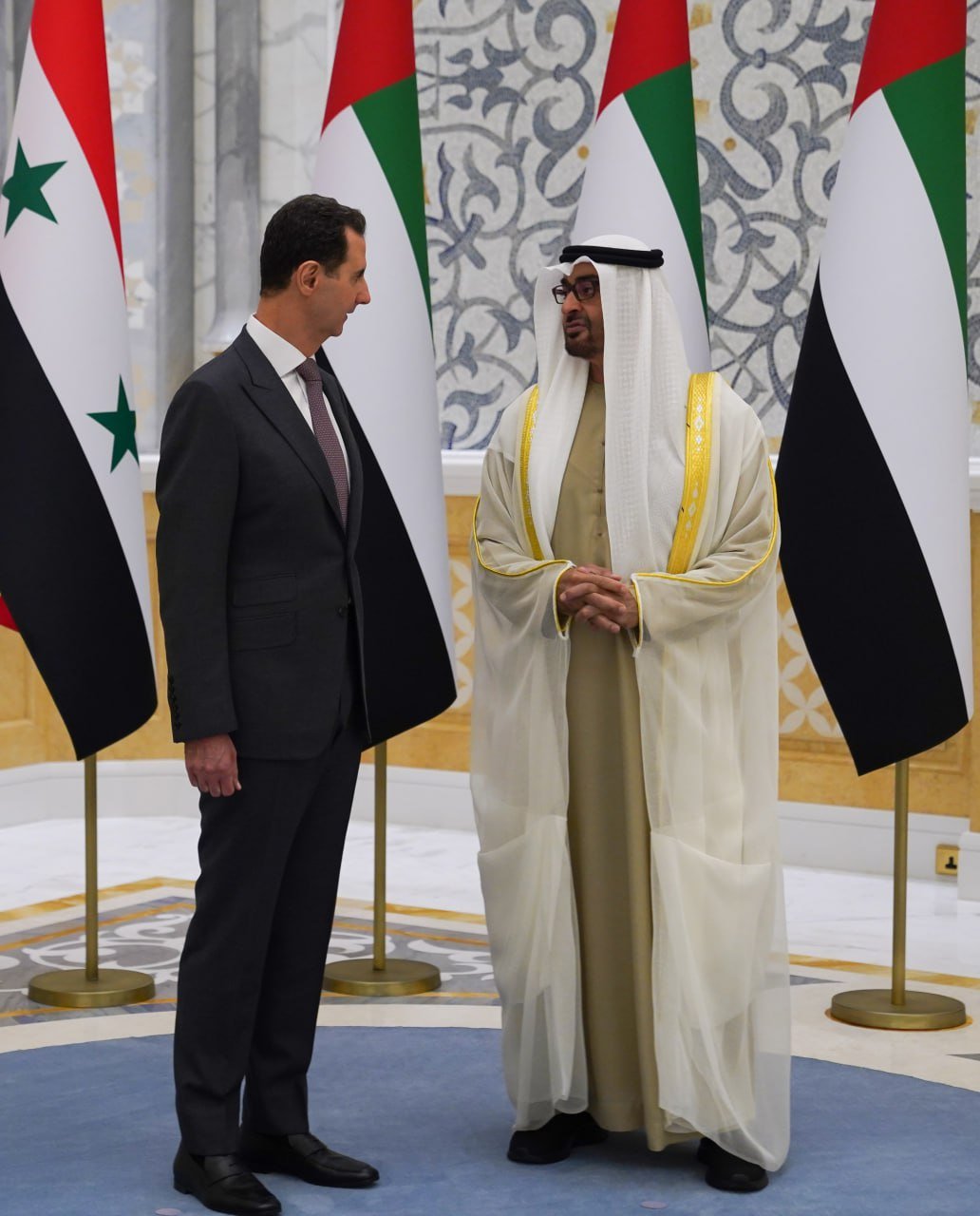 وأضاف البيان: “ثم توجّه الأسد إلى قصر الوطن لبدء المحادثات مع محمد بن زايد آل نهيان”.