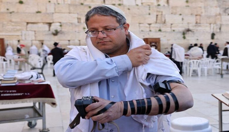 اقتحم المتطرف إيتمار بن غفير وزير الأمن القومي في حكومة الاحتلال ، اليوم الأربعاء 26 أبريل 2023 ، الحرم الإبراهيمي الشريف، في مدينة الخليل ضمن اقتحامات الاحتلال ومستوطنيه المتواصلة للحرم منذ أمس الثلاثاء، وتنفيذ رقصات تلمودية داخله، احتفالا بما يسمى عيد “الاستقلال”.