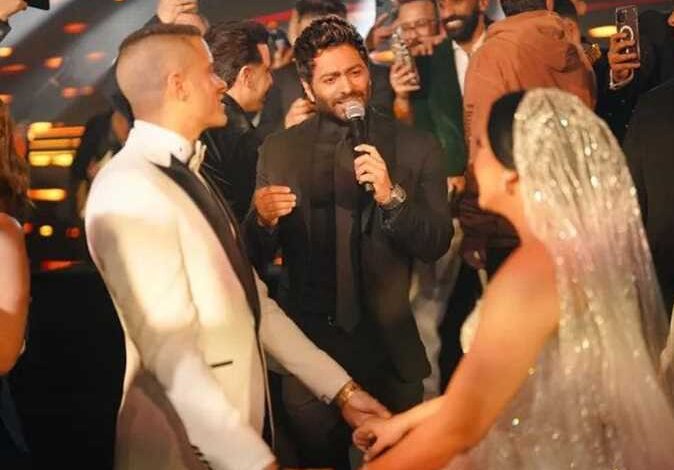 تامر حسني يغني في حفل زفاف حسن شاكوش (فيديو)