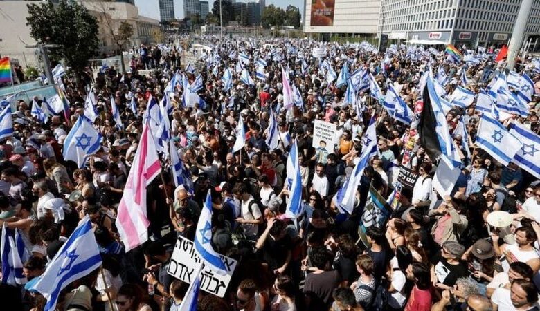 تجددت، مساء اليوم السبت، التظاهرات الاحتجاجية ضد حكومة بنيامين نتنياهو وخطة إضعاف القضاء، في تل أبيب وعشرات البلدات والمفترقات الرئيسة، وذلك للأسبوع الثامن عشر على التوالي.