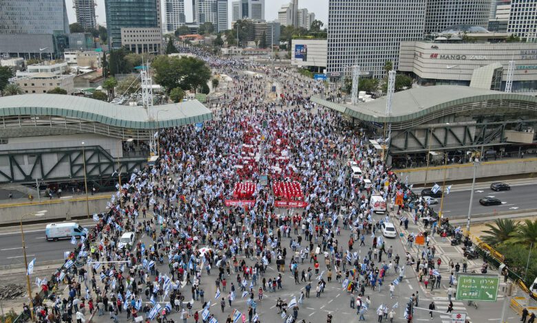 إلى جانب ذلك، تواصلت احتجاجات قوات الاحتياط في الجيش الإسرائيلي، اليوم، وبعث ضباط في سلاح المدرعات تسرحوا في السنوات الأخيرة من الخدمة الدائمة في الجيش رسالة إلى رئيس الحكومة الإسرائيلية بنيامين نتنياهو، ووزير الأمن يوآف غالانت، كتبوا فيها أنه “ننظر مصدومين وغاضبين على تغيير النظام الذي تدفعونه، ولدى كل واحد منا خط أحمر، وقسم منا سيتوقف عن الامتثال في الاحتياط إذا تم تمرير الانقلاب على النظام القضائي بالقراءة الثالثة، وبعضنا وضع خطوطا حمراء أخرى وقسم ثالث سيستمر بالمثول. وجميعنا موحدون بالدعوة.