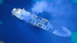 أظهرت صور جديدة، رفعت عنها السرية، ناقلة النفط اليونانية “سونيون” تحترق بعدما استهدفها الحوثيون في البحر الأحمر في 21 أغسطس المنصرم.
