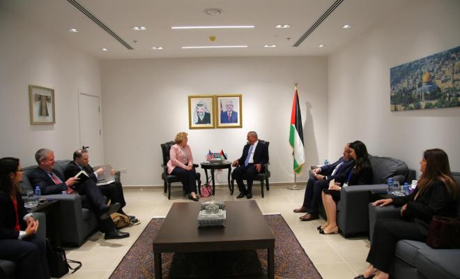 اجتمع حسين الشيخ أمين سر اللجنة التنفيذية لمنظمة التحرير الفلسطينية اليوم الاثنين 19 يونيو 2023 مع وفد أمريكي رفيع المستوى برئاسة مساعد وزير الخارجية لشؤون الشرق الأدنى في وزارة الخارجية الامريكية باربرا ليف.