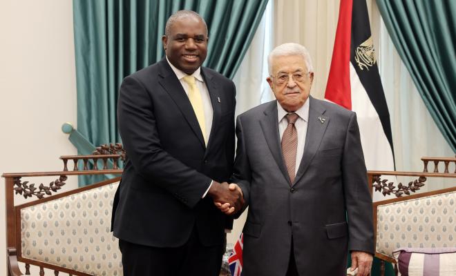 جاء ذلك خلال استقبال الرئيس عباس بمقر الرئاسة في مدينة رام الله، وزير الخارجية البريطاني ديفيد لامي.