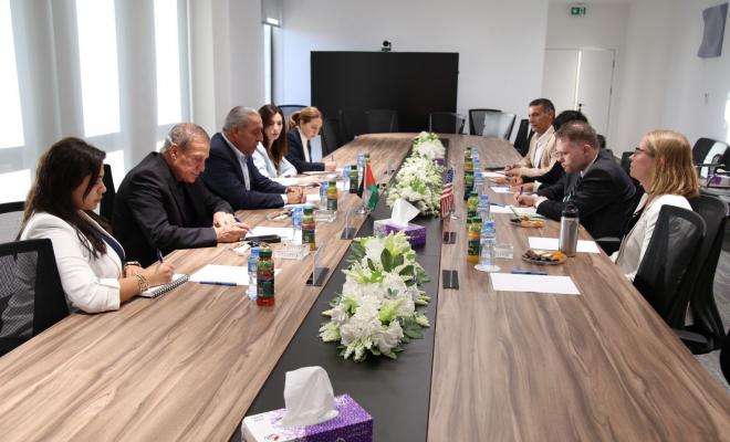 وتم التطرق خلال اللقاء للقضايا الثنائية الفلسطينية الامريكية، وكيفية تجاوز القوانين المجحفة بحق الفلسطينيين لدى الكونغرس الأمريكي، كما تم الحديث عن الوضع المالي الخانق للسلطة الفلسطينية في ظل وقف الدعم الامريكي واستمرار الخصومات الاسرائيلية لأموال السلطة.