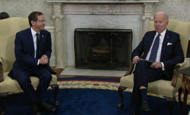 تفاصيل لقاء رئيس دولة الاحتلال مع بايدن