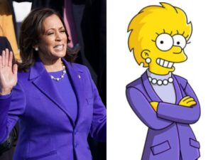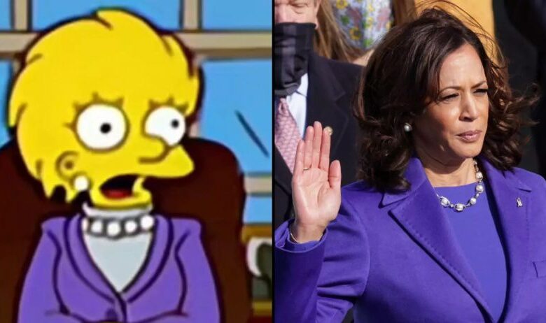 وشهدت مواقع التواصل مقارنة بين نائبة الرئيس كامالا هاريس والتي ترتدي زيا أرجوانيا وبين إطلالة ليزا سيمبسون الرئاسية من حلقة عائلة سيمبسون التي بثت عام 2000، بحسب ما ذكرت صحيفة “ديلي ميل” البريطانية.