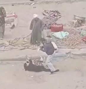 وتداول نشطاء عبر مواقع التواصل الاجتماعي، مقطع فيديو، يظهر خلاله الرجل وهو “يقتل طليقته نحرا” بالشارع في وضح النهار.