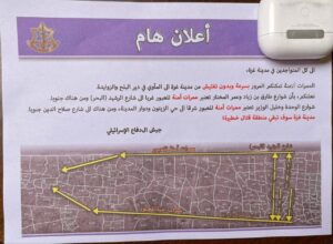 وتداولت وسائل إعلام فلسطينية صورة لمناشير ألقاها الجيش الإسرائيلي على مدينة غزة يدعو فيها سكان مناطق مدينة غزة للنزوح جنوبا ويصفها “منطقة قتال خطيرة”.