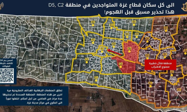 مناطق الاخلاء الاخيرة التي نشرها جيش الاحتلال: