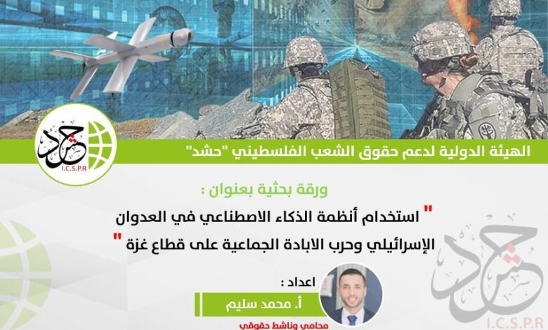 أصدرت الهيئة الدولية لدعم حقوق الشعب الفلسطيني (حشد) ورقة بحثية بعنوان “استخدام أنظمة الذكاء الاصطناعي في العدوان الإسرائيلي وحرب الإبادة الجماعية على قطاع غزة”، إعداد المحامي والباحث والناشط الحقوقي محمد اسليم.