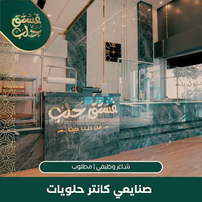 إعلان توظيف صادر عن حلويات فستق حلب تعلن فيه عن حاجتها لصنايعي كانتر حلويات للعمل بمحلات فستق حلب .