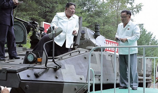وأظهرت صور نشرتها صحيفة رودونغ سينمون الرسمية كيم جالسا خلف المقود في “عربة قتالية مدرعة تم تطويرها حديثا” لدى تجربتها، محاطا بثلاثة مسؤولين.