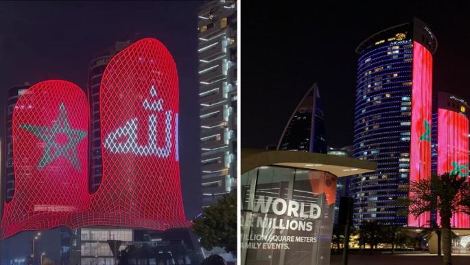 أضيئت أبراج عدة في مدينتي الدوحة ولوسيل في قطر بعلم المغرب