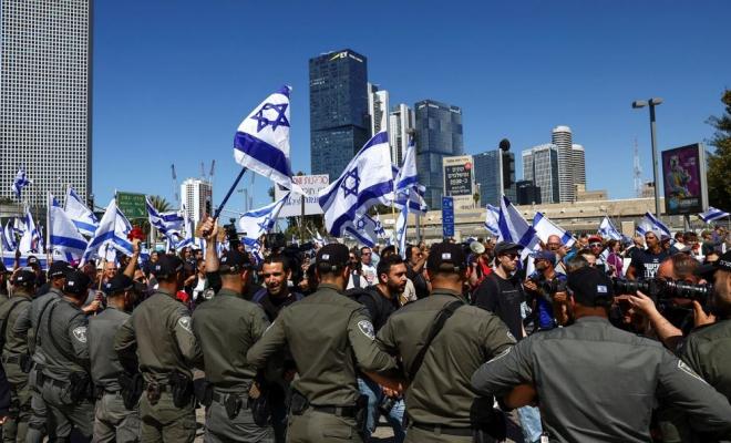 وأغلق متظاهرون صباح اليوم، الشارع المؤدي إلى وزارات المالية والداخلية والاقتصاد في القدس ، احتجاجا على مواصلة دفع تشريعات خطة إضعاف جهاز القضاء. وفرقت الشرطة بالقوة المتظاهرين، الذين ربطوا بعضهم ببعض، واعتقلت 10 متظاهرين، حسبما ذكرت وسائل إعلام إسرائيلية.