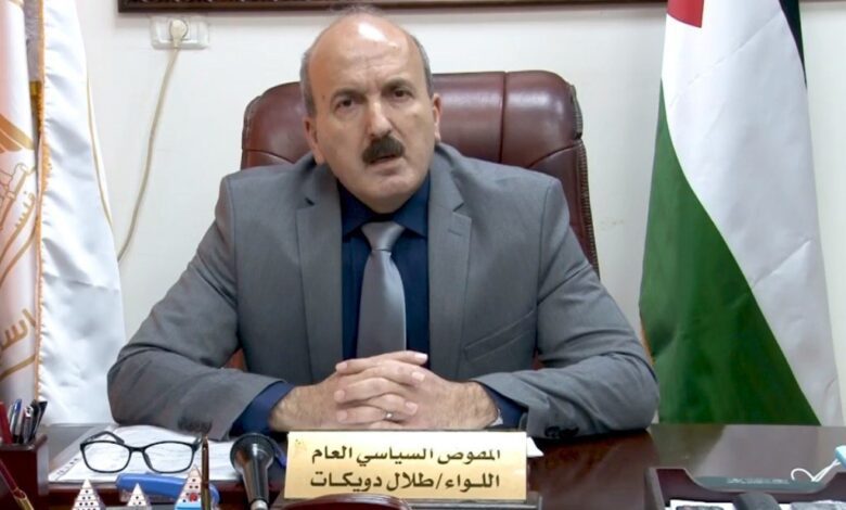 وأكد دويكات في أن جهود المؤسسة الأمنية مستمرة في كل المحافظات لتوفير الأمن والأمان ومعالجة كل مظاهر الفوضى.