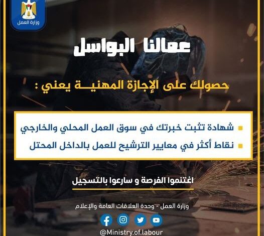 رابط التسجيل للإجازة المهنية التي تحدثت عنها وزارة العمل كأولوية في تصاريح المشغل