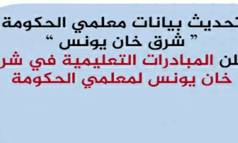 وفي إطار حرص لجنة المبادرات التعليمية في منطقة شرق خان يونس على تحديث بيانات معلمي الحكومة وتعزيز التواصل معهم، تم الإعلان عن دعوة لجميع المعلمين المقيمين في المناطق التالية: