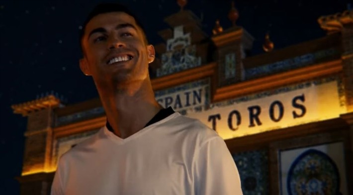 ظهر في بداية الإعلان أحمد عز وهو يجلس على كرسي ويتابع الحضور في موسم الرياض، لتقع عينه على كريستيانو رونالدو الذي يلعب كرة القدم، ويشوط الكرة ناحية عز.