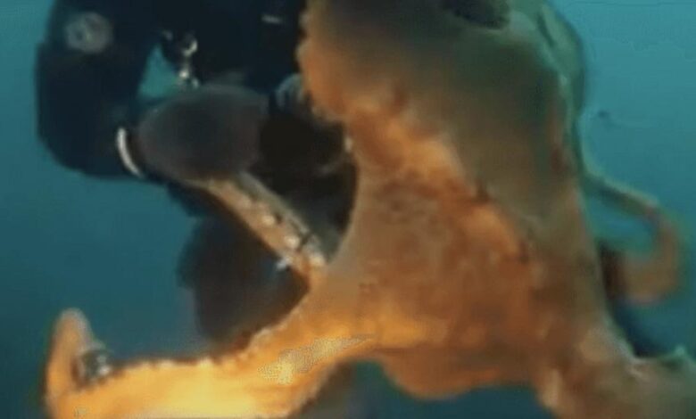 شاهد .. أخطبوط عملاق يهاجم غطاسا تحت الماء