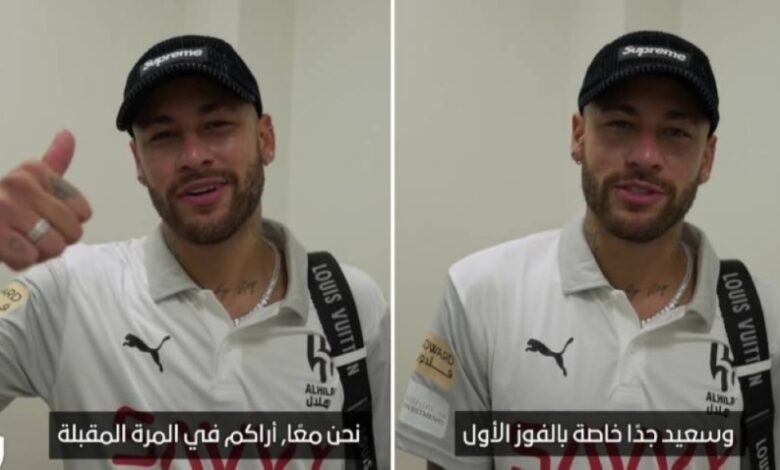 وقال نيمار في مقطع فيديو نشره الهلال عبر منصة “إكس”: “سعيد جدا بالظهور الأول والتمريرة الحاسمة. وسعيد خاصة بالفوز الأول. نحن معا، أراكم في المرة المقبلة”.