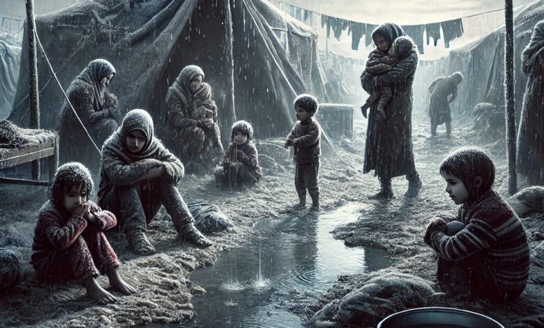 “تحت المطر… النازحون في غزة بين برد الخيام وقسوة الحياة” (فيديو)