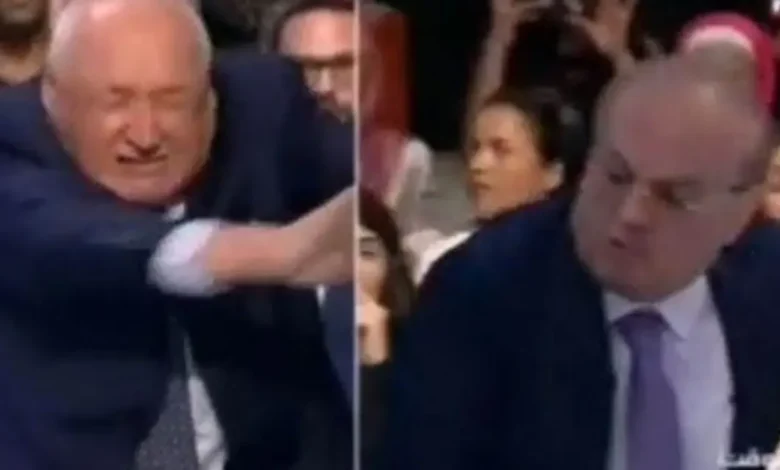 شاهد التلاسن والضرب بتلفزيون لبناني بين إعلامي ووزير سابق