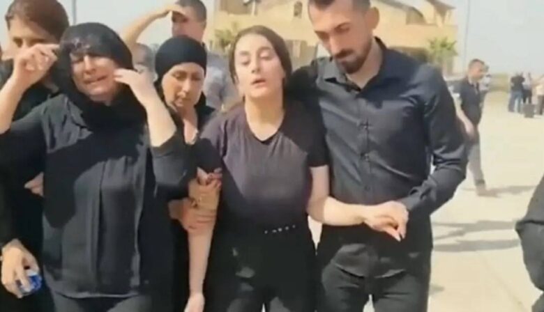 وأظهر الفيديو العروس وهي تسير وراء نعش والدها، وترتدي ملابس سوداء وتسير بجانب عريسها وامرأة أخرى وبدت في حالة انهيار تام، وتبكي وتردد “ياربي”، فيما حاولت سيدة تهدئتها.