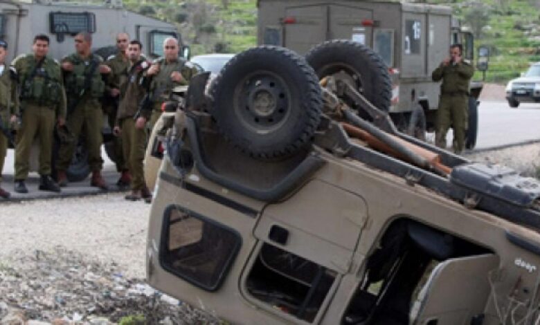 شاهد بالفيديو.. لحظة انقلاب جيب عسكري “إسرائيلي” في الخليل