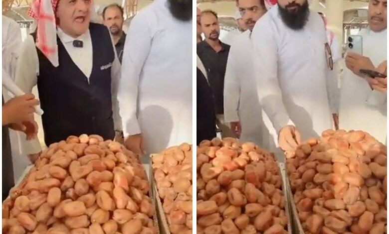 وثق مقطع فيديو مزاد على بيع كرتونين من التمر بمبلغ صادم.