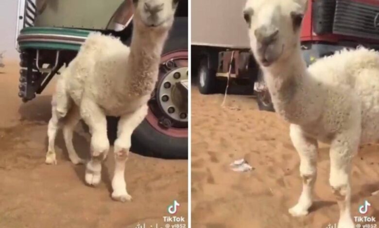 شاهد.. جمل قصير القامة يثير تفاعل واسع على مواقع التواصل