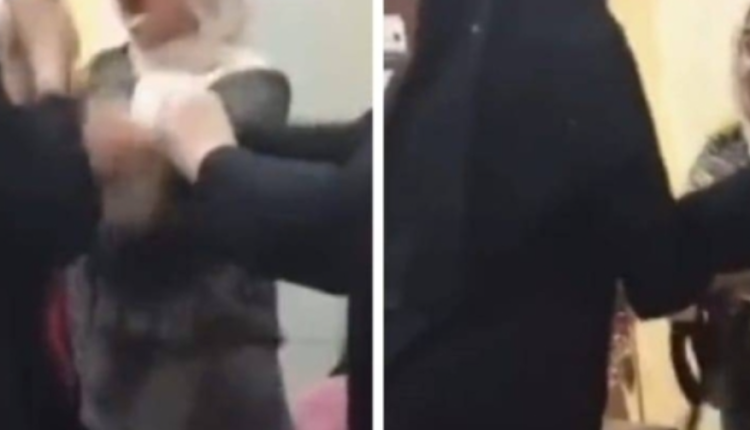 ظهر الطالبة في المقطع المتداول على نطاق واسع وهي تحاول أخذ الجوال من يد المعلمة، وصرخت في وجهها قائلة:” أعطيني التليفون”.