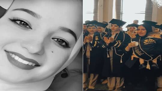 وظهرت شقيقة الطالبة المتوفاة في حفل تخرج كلية الحقوق جامعة الزقازيق بمحافظة الشرقية، وهي تحمل الطفل الرضيع وتبكي بحرقة أثناء حضورها.