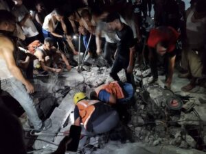 استهداف شقة سكنية في أبراج عين جالوت بمخيم النصيرات، مما أدى إلى سقوط عدد من الشهداء والجرحى.