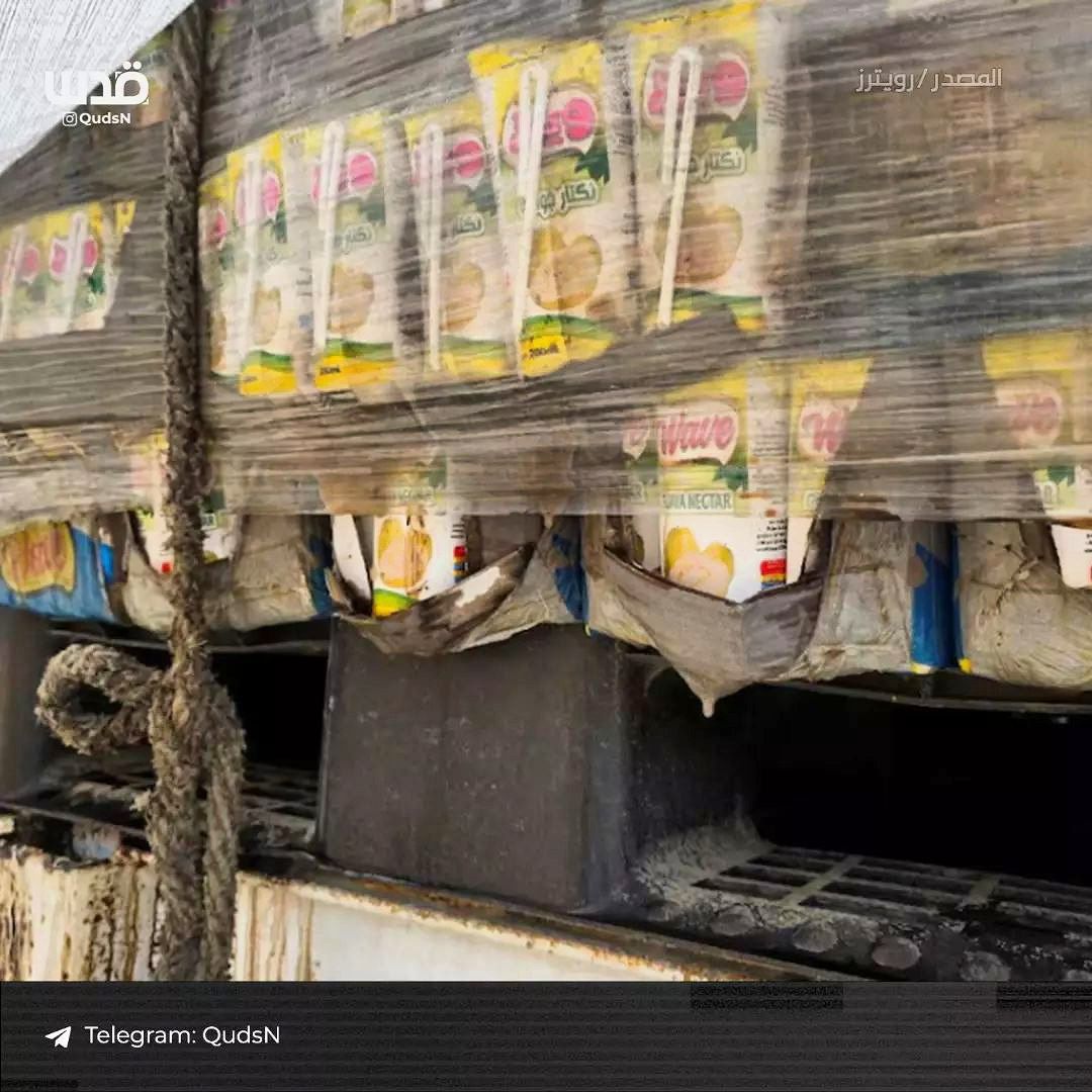 وقال السائق محمود حسين إن البضائع محملة على شاحنته منذ شهر وبدأت تفسد تدريجيا تحت أشعة الشمس، فتم التخلص من بعض المواد الغذائية وبيع بعضها بسعر زهيد.
