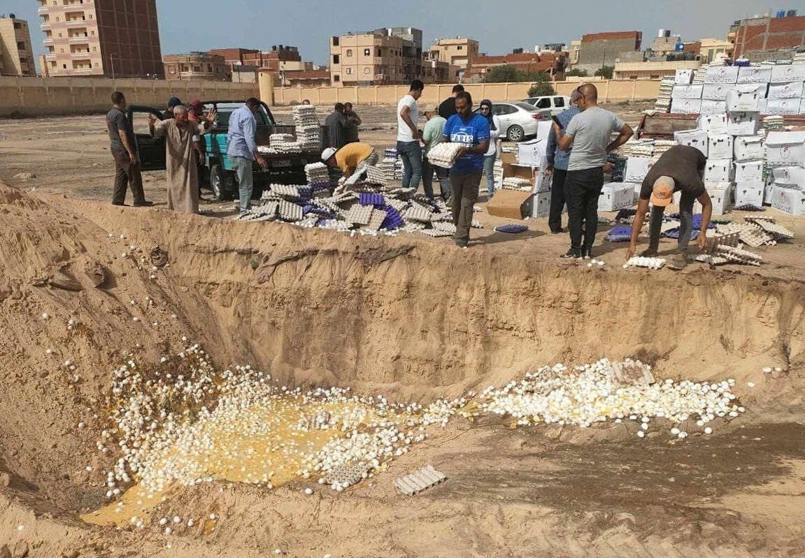 وقال مسؤولون محليون من وزارة التموين المصرية إن بعض المواد الغذائية تباع بأسعار منخفضة في السوق المحلية بشمال سيناء مما أدى إلى مصادرة كميات من البيض الفاسد.