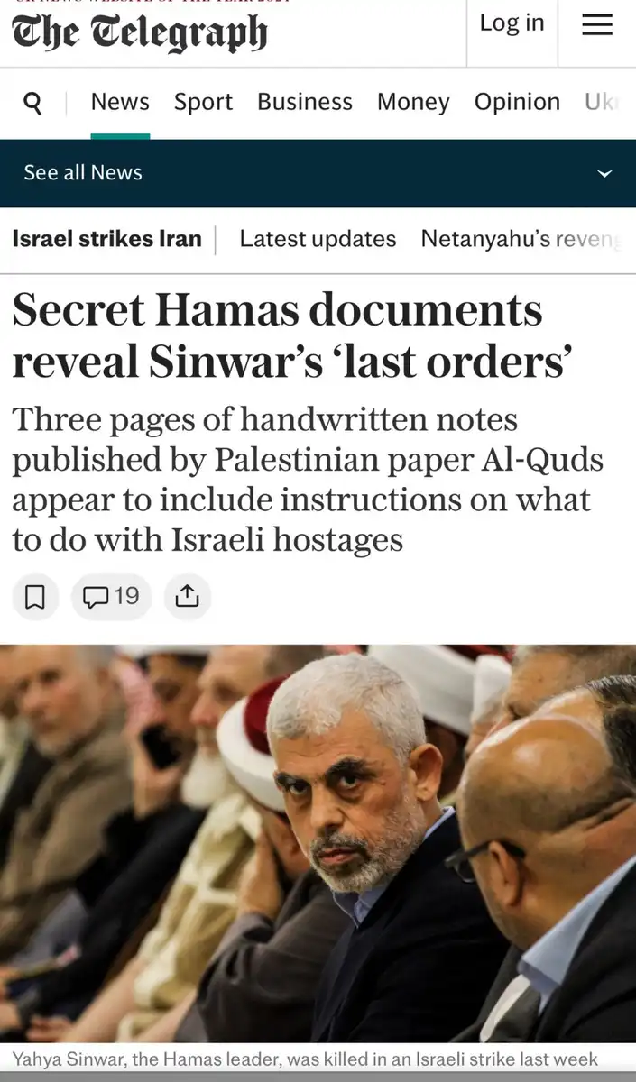 أفادت صحيفة “التلغراف” البريطانية، تحت عنوان “وثائق حماس السرية تكشف الأوامر الأخيرة للسنوار”، أن الوثائق التي نشرها تقرير “ے” تتضمن تفاصيل دقيقة عن أوامر السنوار، وتضم أسماء وأعمار بعض الأسرى مع إحصاءات توضح أعدادهم وأماكن احتجازهم.