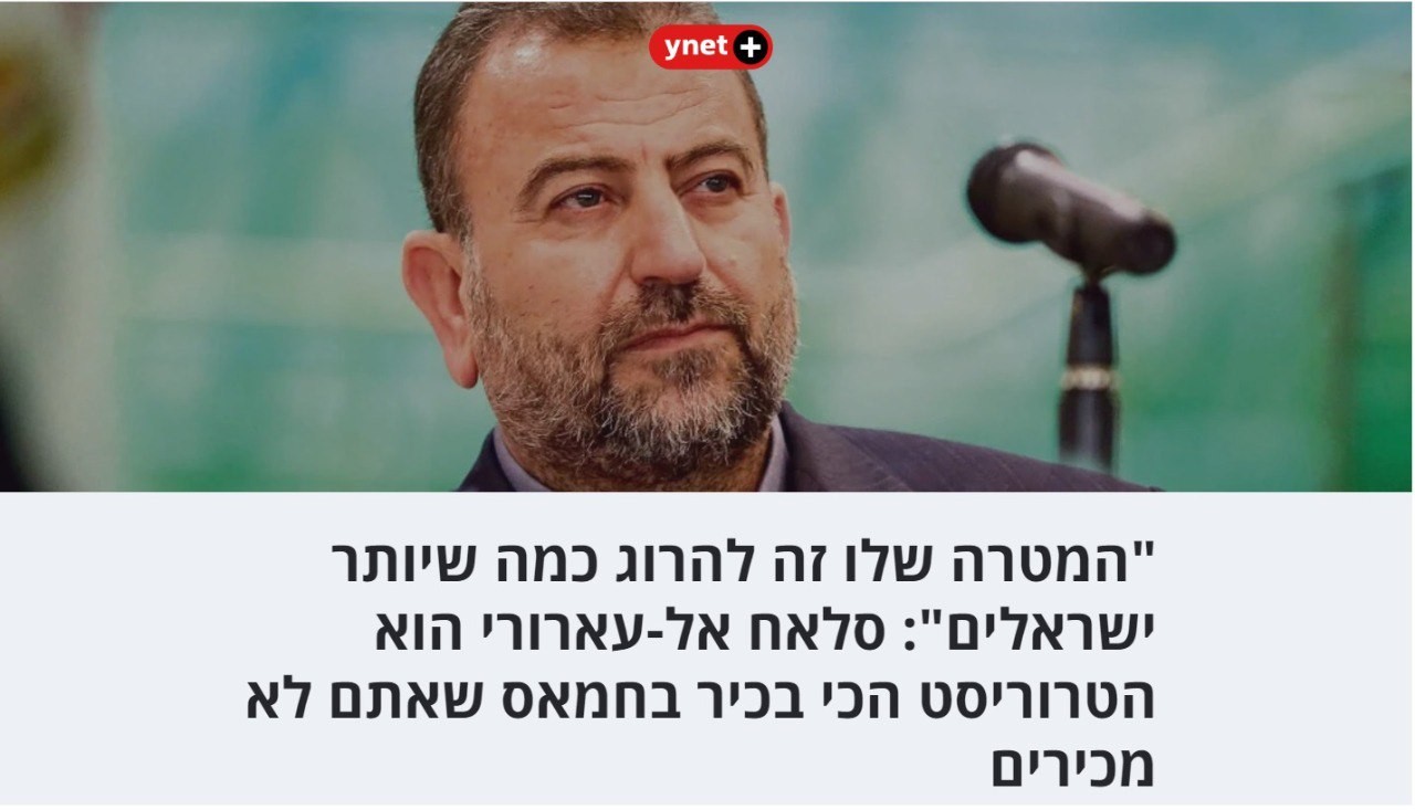 ووصفت الصحيفة العبرية، نائب رئيس المكتب السياسي لحركة حماس صالح العاروري، بأنه “الإرهابي الأكبر” في حماس. وفق قولها
