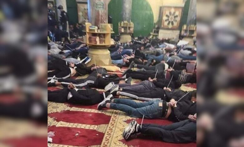 تداولت صفحات إخبارية واجتماعية ومستخدمون في منصات التواصل الاجتماعي، صورة قالوا إنها تعود لتقييد عدد من الشبان من داخل المسجد الأقصى قبيل اعتقالهم من قبل قوات الاحتلال، فجر اليوم الأربعاء.